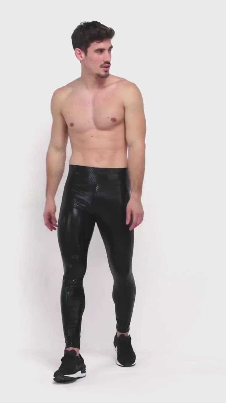 - Description: Black Metallic Snakeskin Men’s Leggings